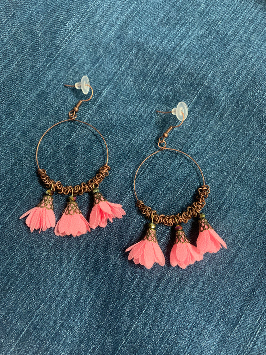 Pink Hoop Frame Chevron Metal Seed Bead Tassel Earring