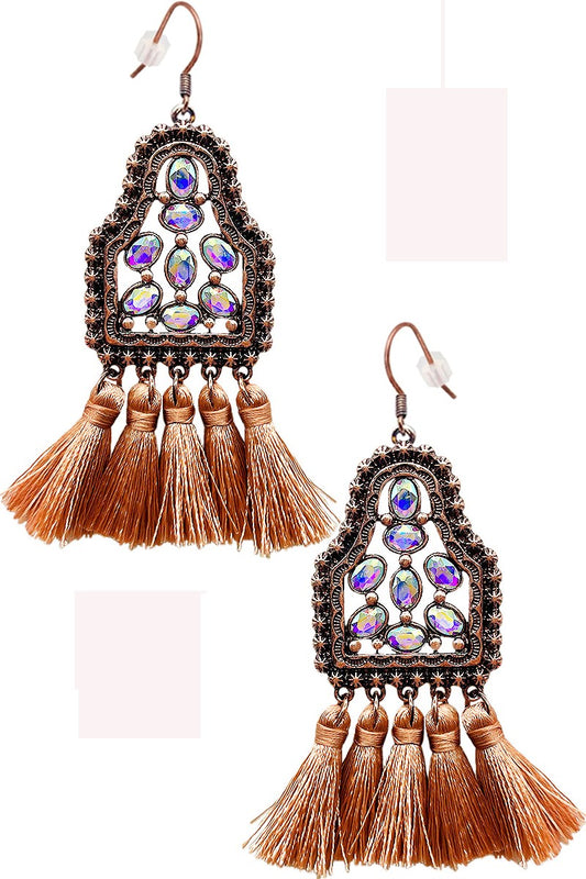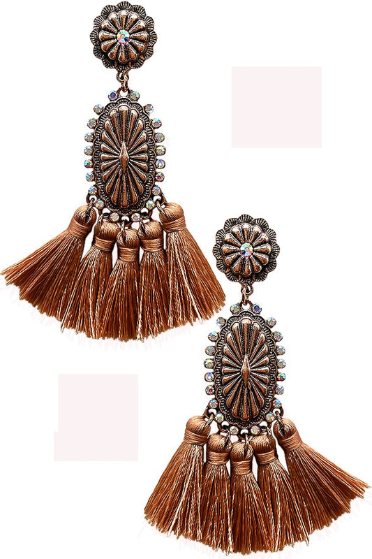 WESTERN AB CONCHO FLOWER THREAD TASSEL EARRING