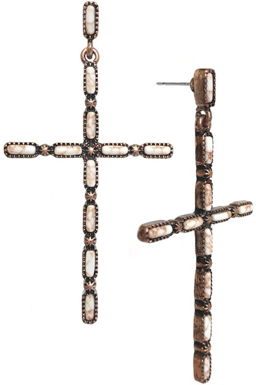 WESTERN CONCHO CROSS GEMSTONE DANGLING EARRING