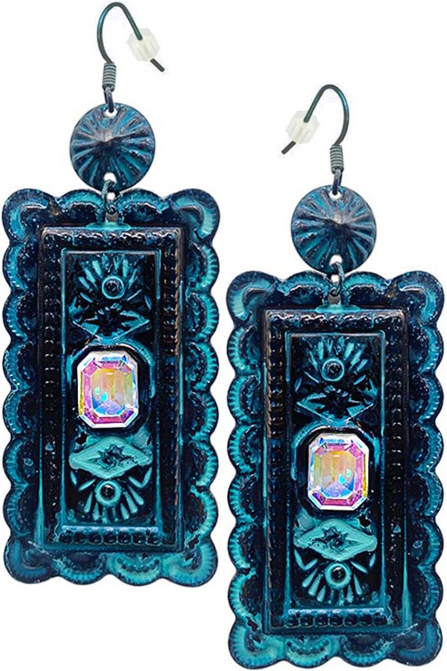 WESTERN CONCHO AZTEC RECTANGLE RHINESTONE EARRING