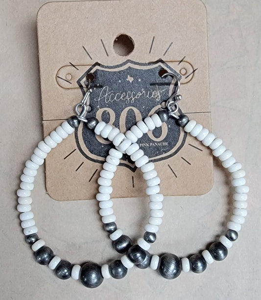 Black Hexagon Frame Metal Seed Bead Tassel Earring