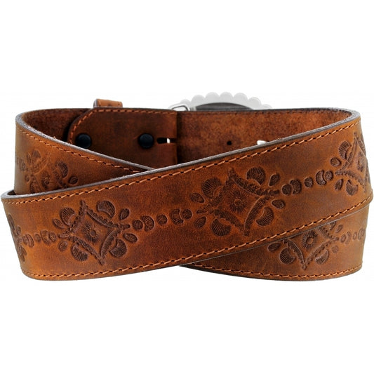 Brown Tooled Genuine Leather Ivory Buckstitch Belt