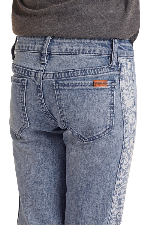 ROCK & ROLL AZTEC PANEL BUTTON MEDIUM WASH FLARE JEAN