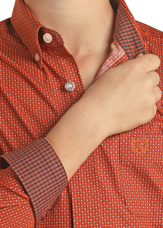 PANHANDLE SLIM RUST GEO PRINT LONG SLEEVE SHIRT