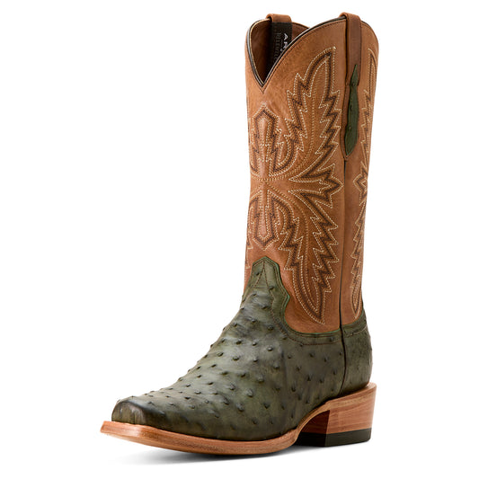 ARIAT OLIVE FULL QUILL OSTRICH FURTURITY RELENTLESS BUCKLES COWBOY BOOT