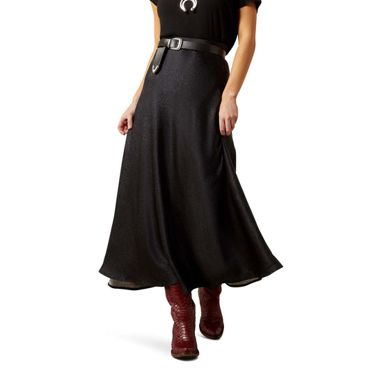 Black Boot Stitch Embroidered Snap-Front Western Maxi Skirt