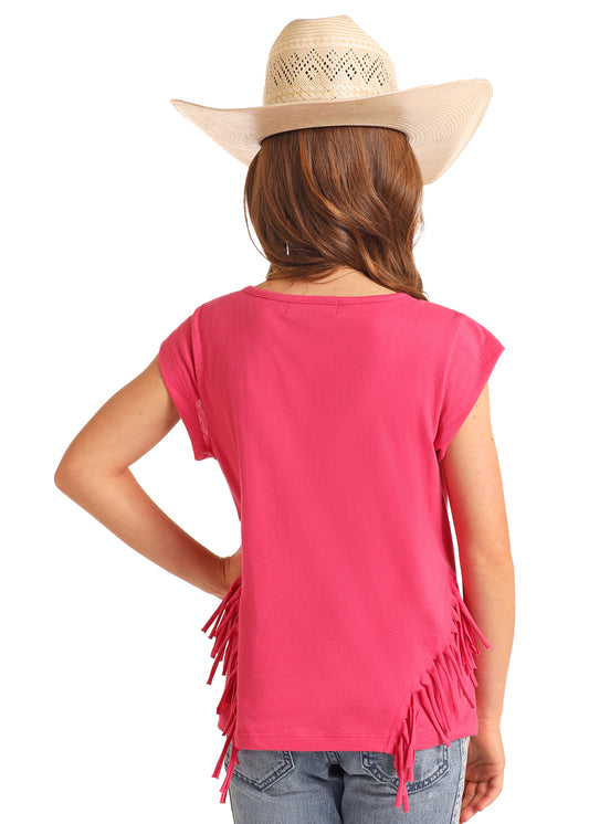 ROCK & ROLL PINK AZTEC RHINESTONE FRINGE TOP