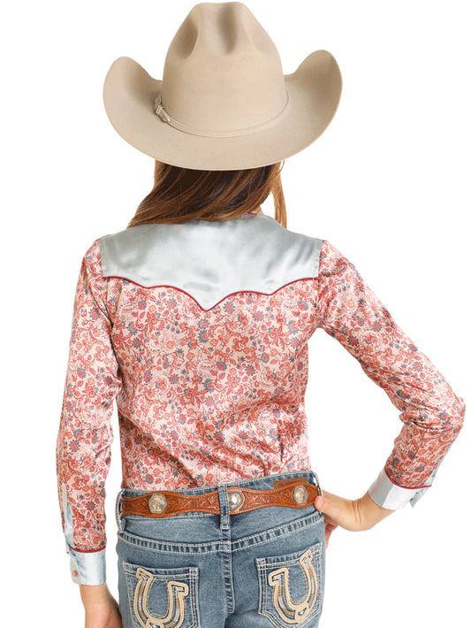 Rock & Roll Denim Kids Printed Satin Shirt Rose Mauve