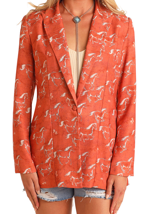 ROCK & ROLL BURNT ORANGE HORSE PRINT BLAZER