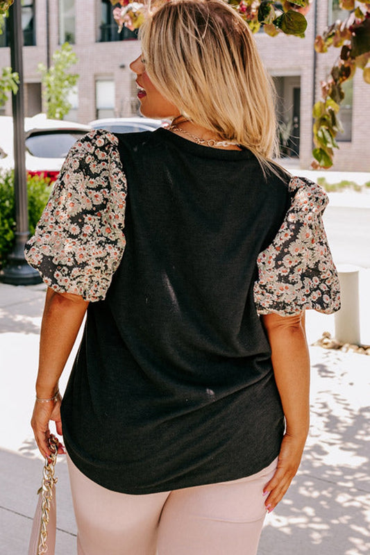 Daisy Printed Short Bubble Sleeve Tunic Top