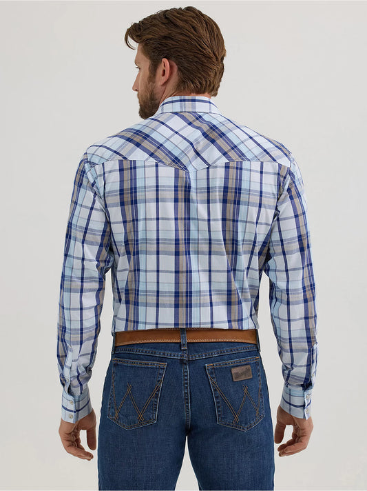 Wrangler 20X Competition Advanced Comfort Blue Lake Plaid Long Sleeve Snap Shirt
