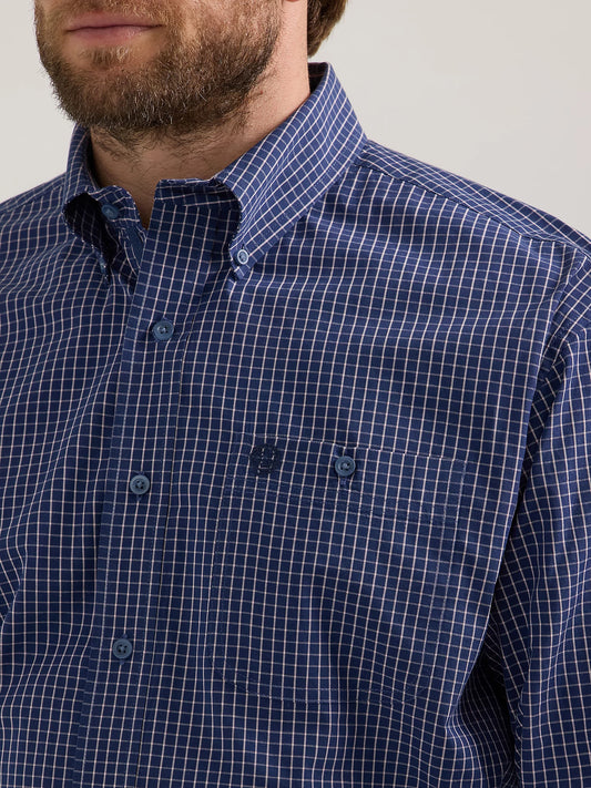 Wrangler George Strait Atlantic Plaid Long Sleeve Button Down One Pocket Shirt