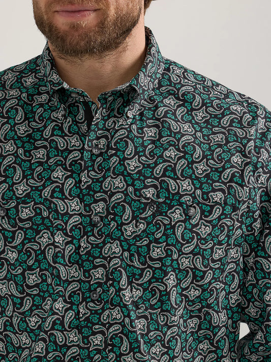 Wrangler George Strait Paisley Black Long Sleeve Button Down Two Pocket Shirt