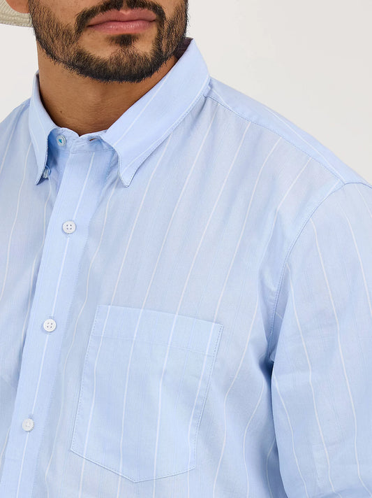 Wrangler Cody Johnson Powder Blue Stripe One Pocket Button Down Shirt