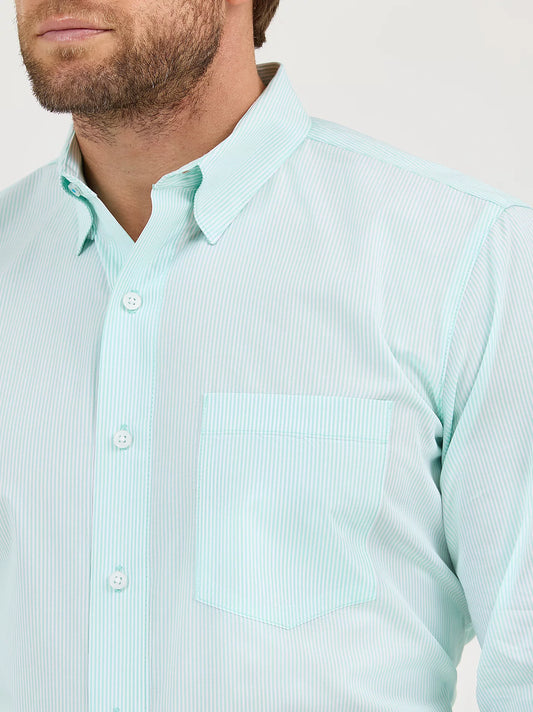 Wrangler Cody Johnson Pear Green Stripe One Pocket Button Down Shirt