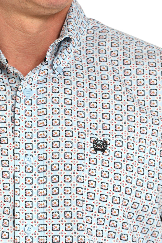 Cinch Men's Blue Flower Power Long Sleeve Shirt