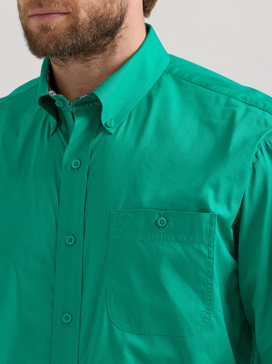Wrangler George Strait Green Long Sleeve Button Down One Pocket Shirt