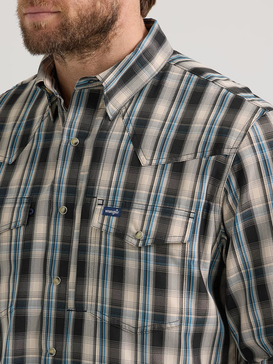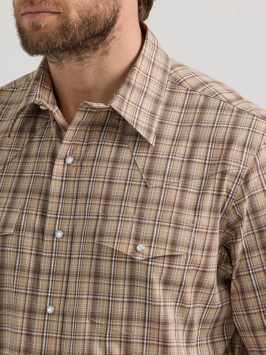 Wrangler Performance Snap Long Sleeve Tan/Black Plaid Shirt