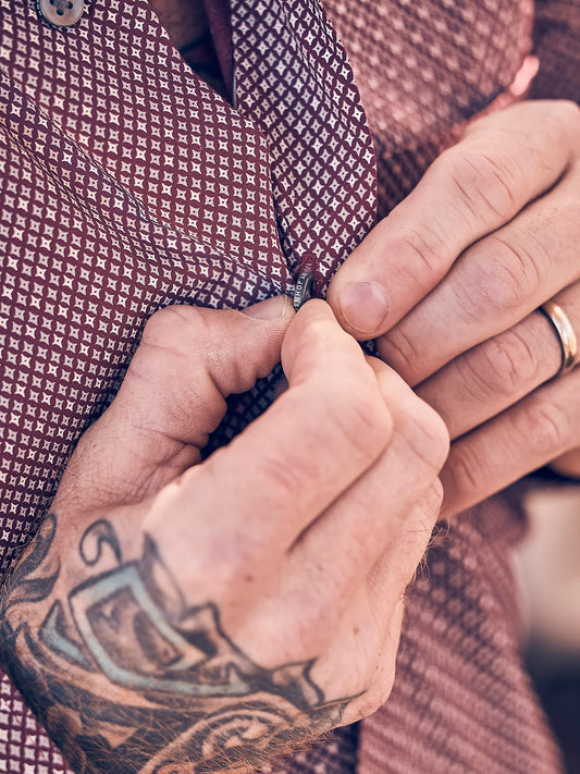 Wrangler Cody Johnson Burgundy Diamond One Pocket Button Down Shirt