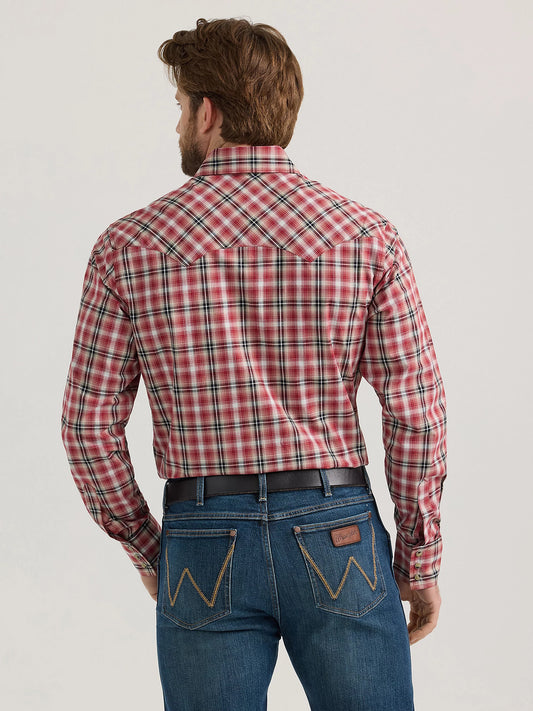 Wrangler Retro Vermilion Red Long Sleeve Sawtooth Snap Pocket Western Shirt
