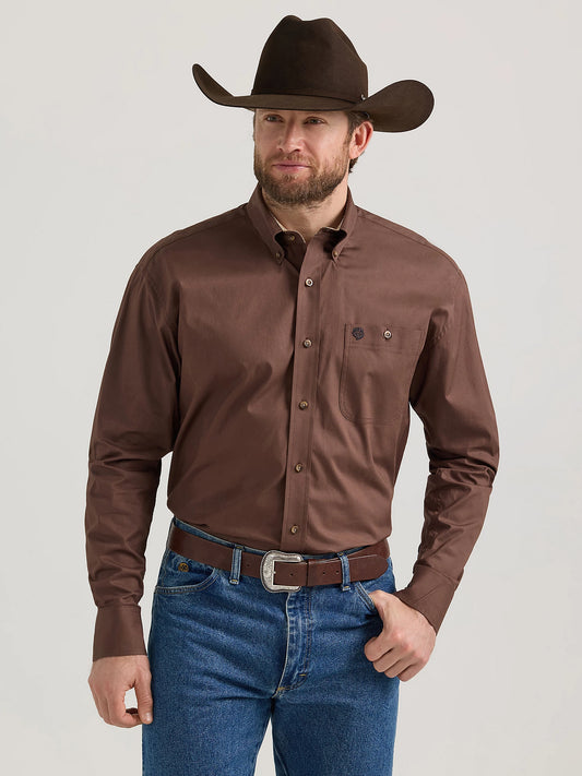 Wrangler George Strait Brown Chocolate Long Sleeve Button Down One Pocket Shirt