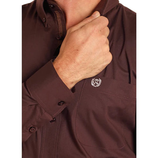 PANHANDLE SLIM BROWN SOLID POPLIN LONG SLEEVE SHIRT