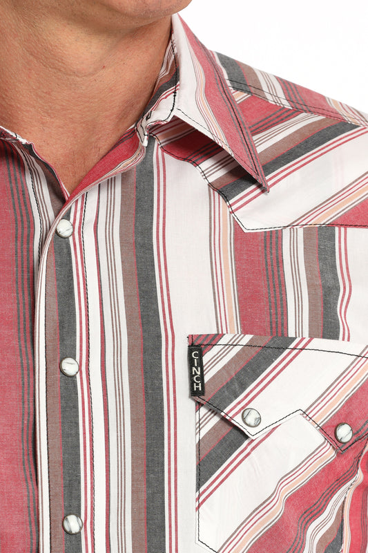 CINCH RED STRIPED MODERN FIT LONG SLEEVE SHIRT