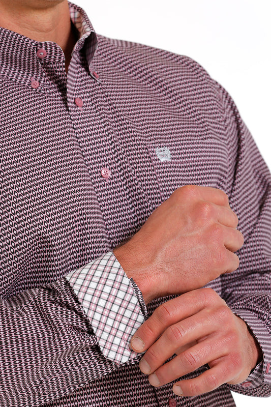 CINCH MENS PINK PRINT LONG SLEEVE SHIRT