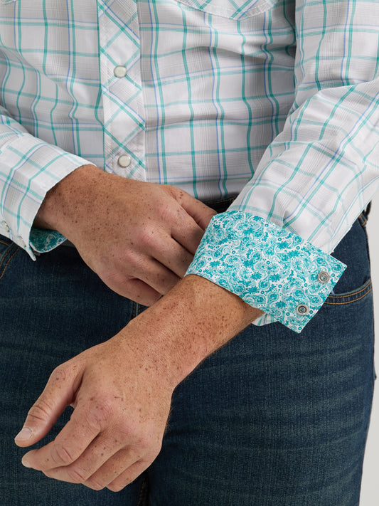 WRANGLER 20X TURQUOISE STRIPED LONG SLEEVE SNAP SHIRT
