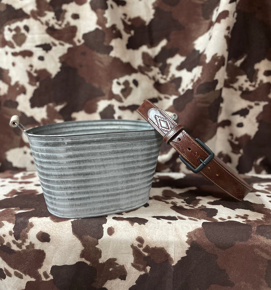 Western Floral Tooled Beaded Full-Grain Leather Belt