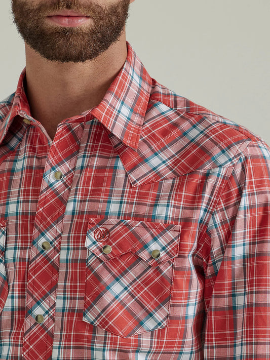 WRANGLER RETRO RED PICNIC LONG SLEEVE SAWTOOTH SNAP SHIRT