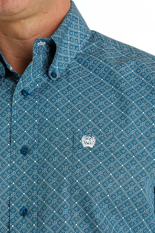 CINCH TEAL GEOMETRIC PRINT LONG SLEEVE SHIRT SHIRT