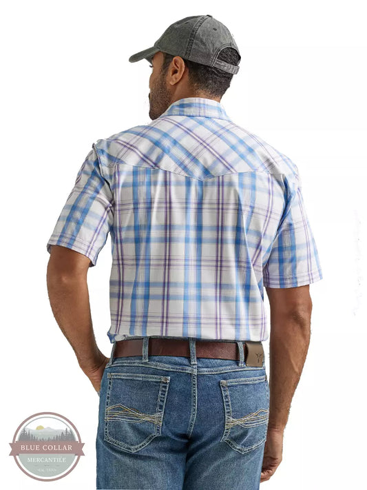 WRANGLER 20X COMPETITION ADVANCED COMFORT SHORT SLEEVE WESTERN SNAP SHIRT IN PURPLE PLAID