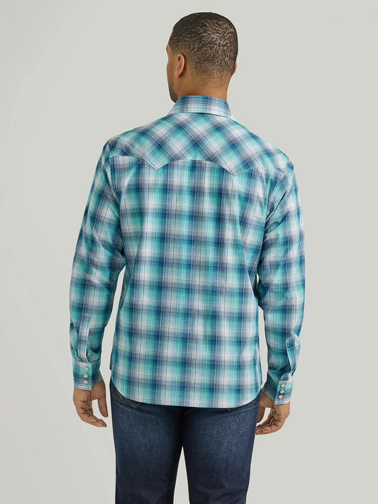 Wrangler Retro Teal Blur Long Sleeve Sawtooth Snap Pocket Shirt
