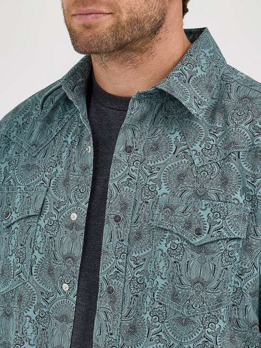 Wrangler Retro Pine Paisley Premium Long Sleeve Western Snap Shirt