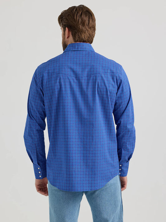 Wrangler Wrinkle Resist Lapis Long Sleeve Western Snap Plaid Shirt