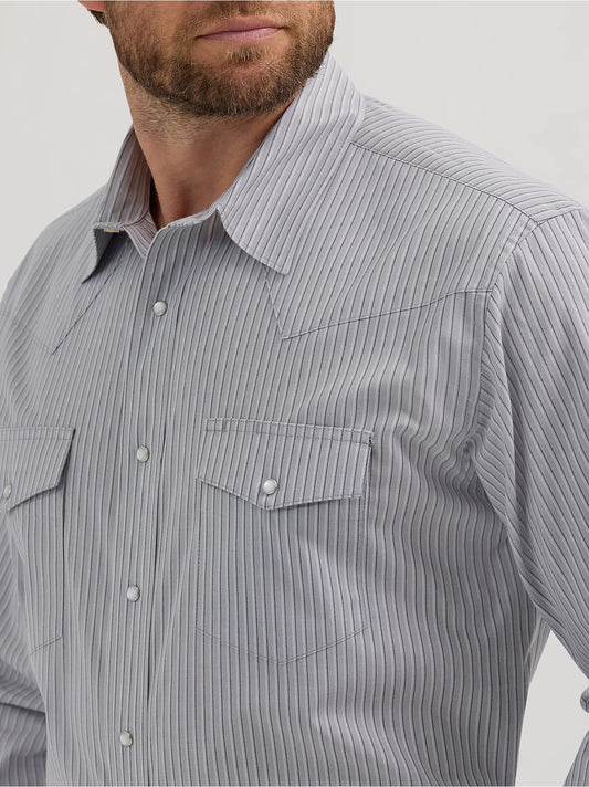 Wrangler Wrinkle Resist Long Sleeve Smoky Grey Snap Stripe Shirt