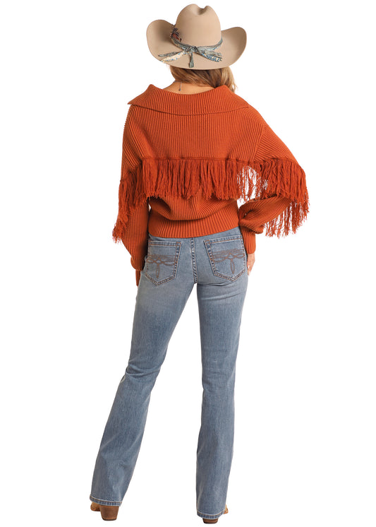 ROCK & ROLL ORANGE FRINGE SWEATER
