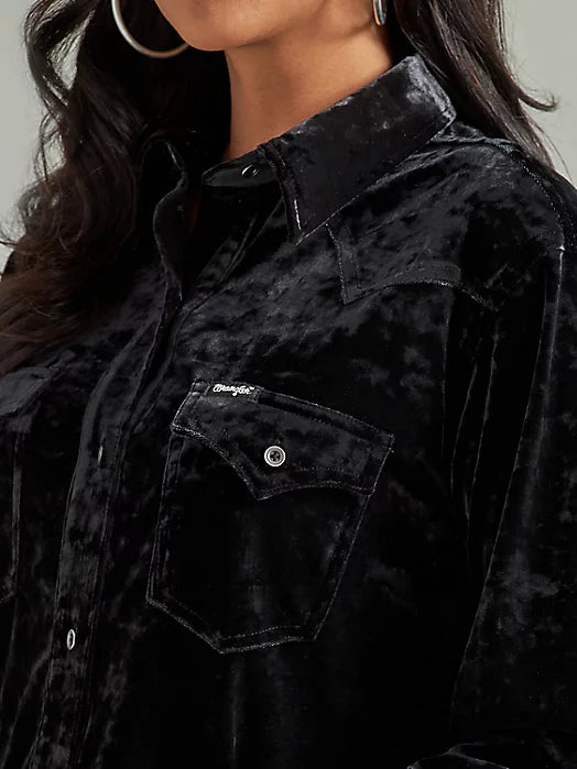 WRANGLER RETRO LONG SLEEVE BOYFRIEND FIT VELVET TOP