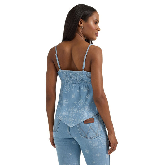Wrangler Blue Retro Women's Smocked Bandana Top