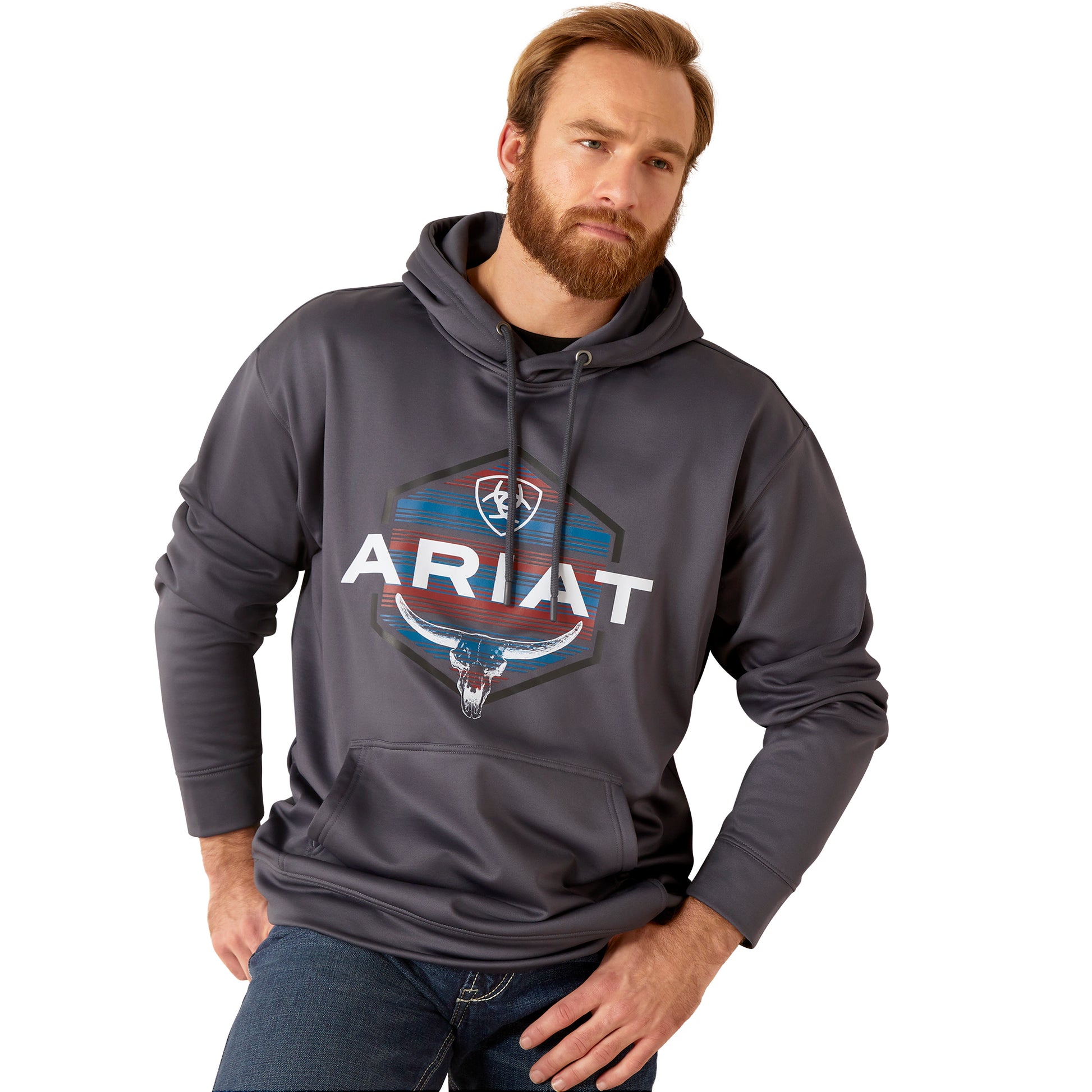 ARIAT ODYSSEY GRAY HEATHER LOGO FLEECE TEK HOODIE