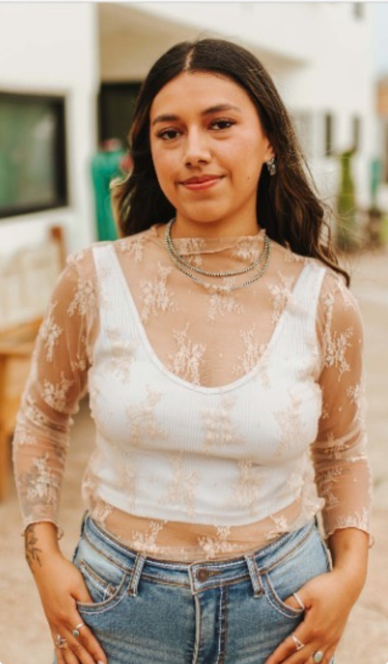 Because who doesn't need a sheer lace beige top to go with any bottoms in your closet.