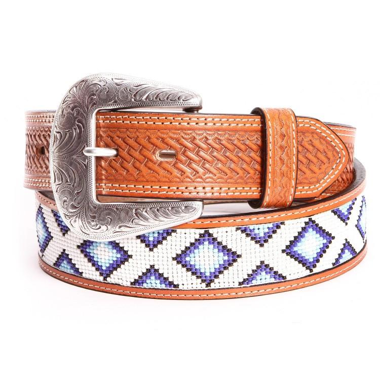 Cowboy Chrome Men's Blue Diamond Hand Beaded Belt