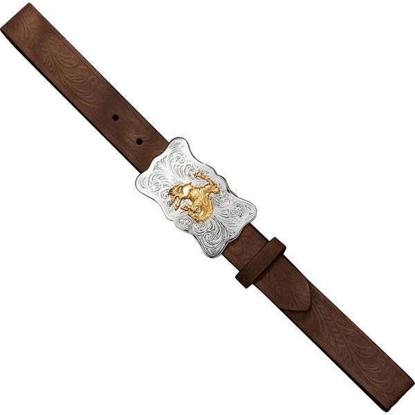 - Fancy silver buckle with bronze bucking bronco