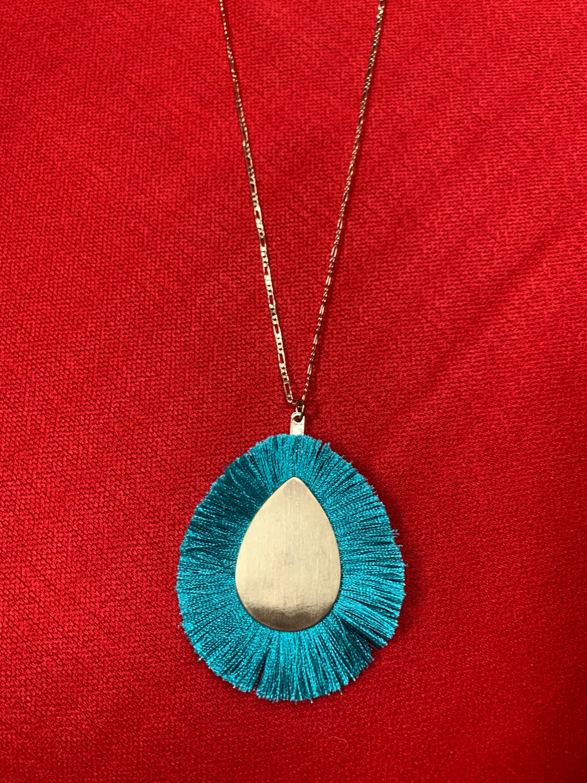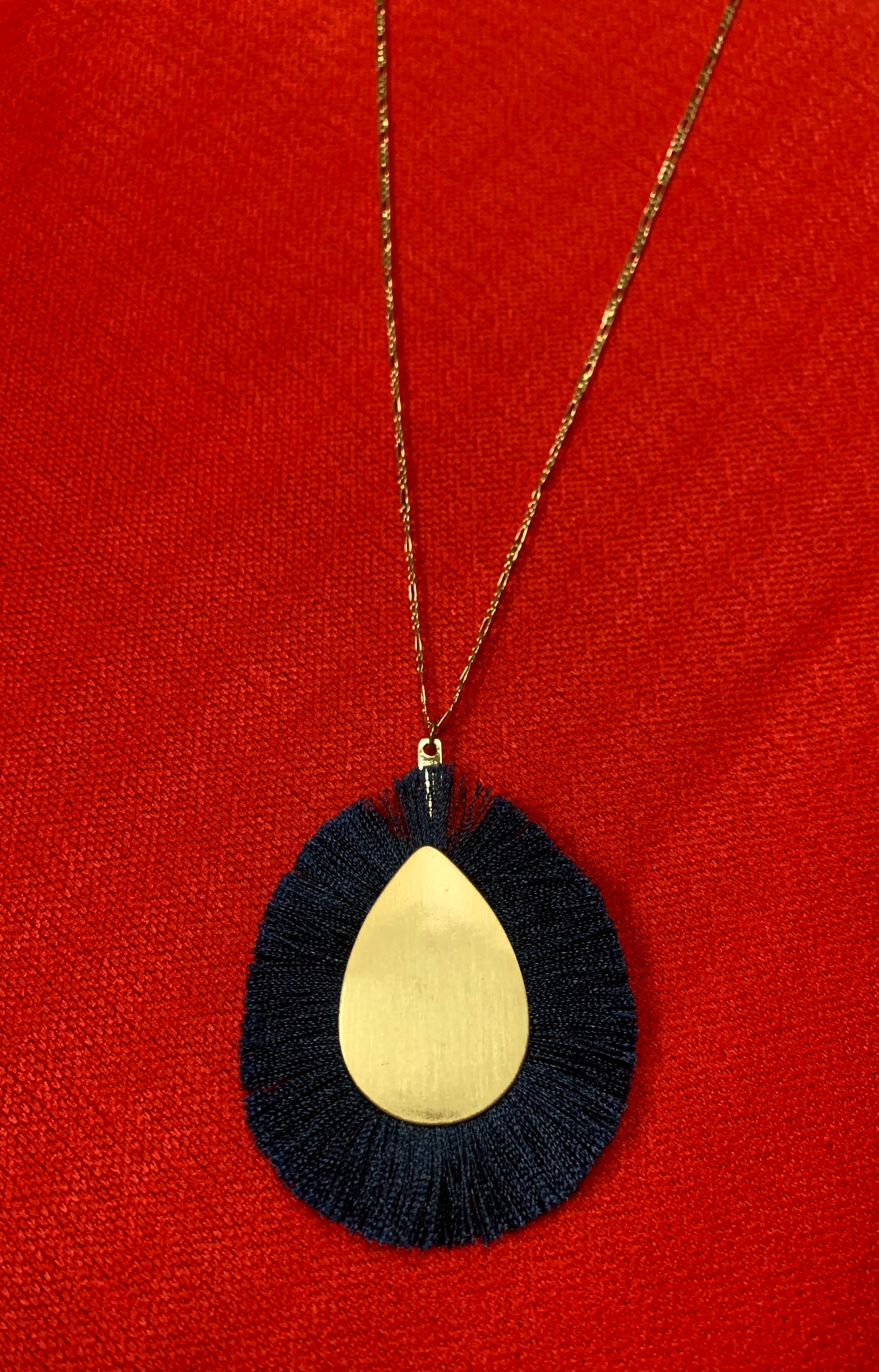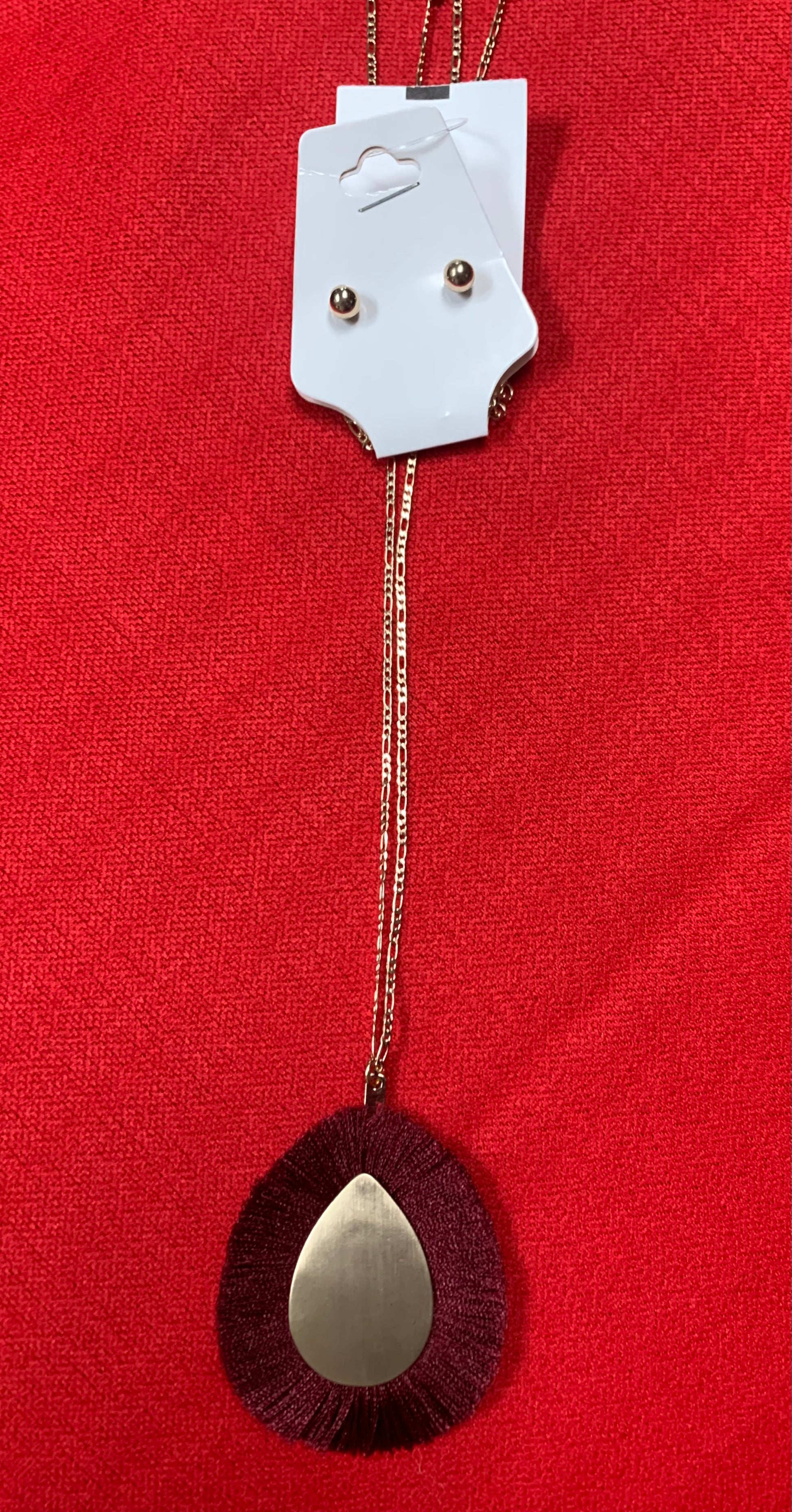 GOLD TEARDROP FRINGE NECKLACE WITH GOLD STUD EARRINGS