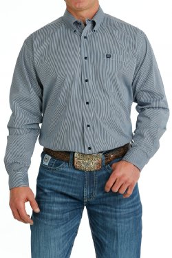 CINCH MENS NAVY BLUE PIN STRIPE BUTTON DOWN SHIRT