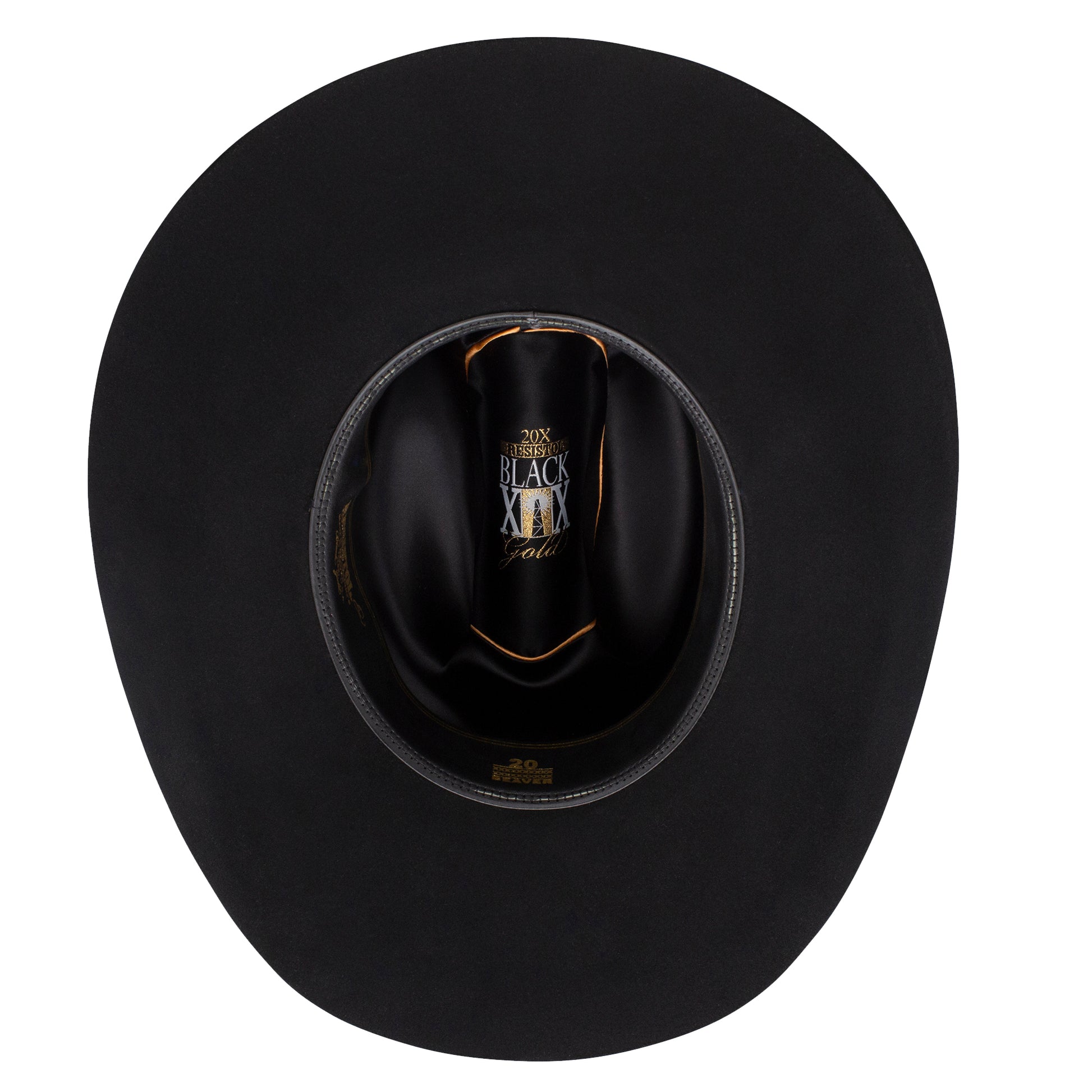 Distinguished by expert craftsmanship and a premium suede finish, the 20X Black Gold Cowboy Hat is the perfect fusion of style and substance. Its features include 20X felt construction, a 4 5/8” cattleman’s crown, a 4 1/4” brim, a silver hatband buckle, and a top-tier sheepskin sweatband. The 20X Black Gold Cowboy Hat is ideal for formal and semi-formal events like weddings, business meetings, date nights, or any other occasion when looking like a million bucks is imperative.