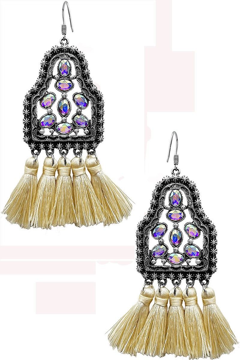 WESTERN AB CATTLE TAG THREAD TASSEL EARRING