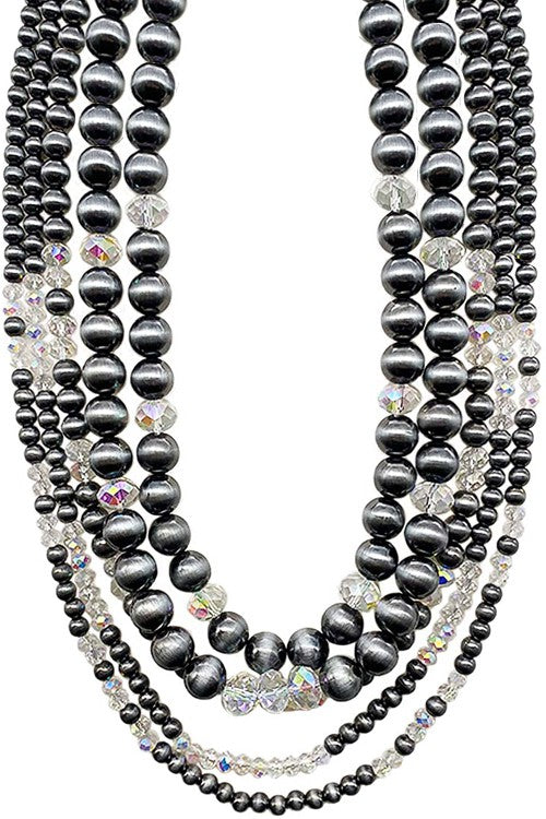 WESTERN SILVER NAVAJO PEARL GLASS CRYSTAL BEAD NECKLACE