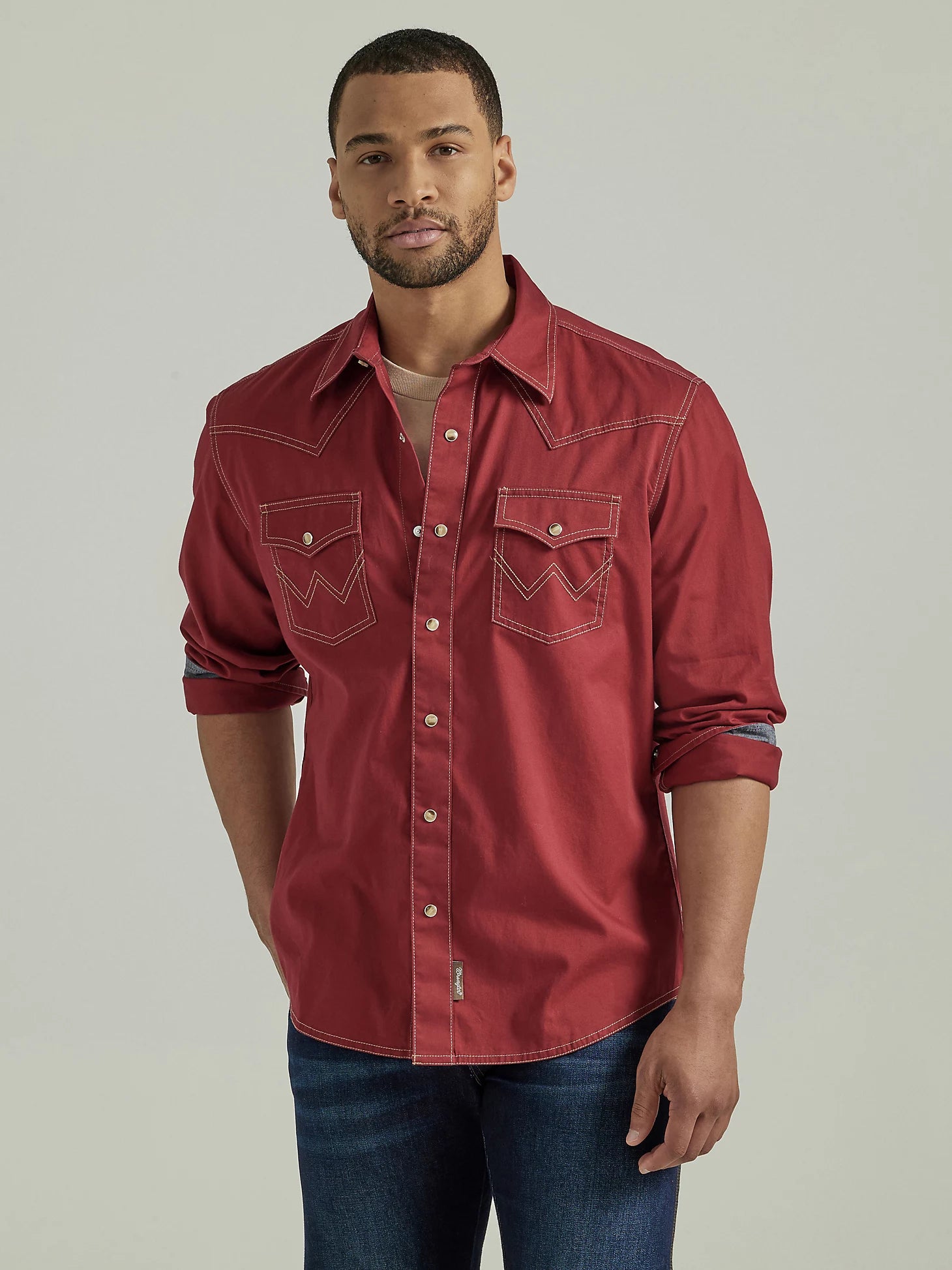 WRANGLER RETRO BRICK RED SNAP SOLID SHIRT